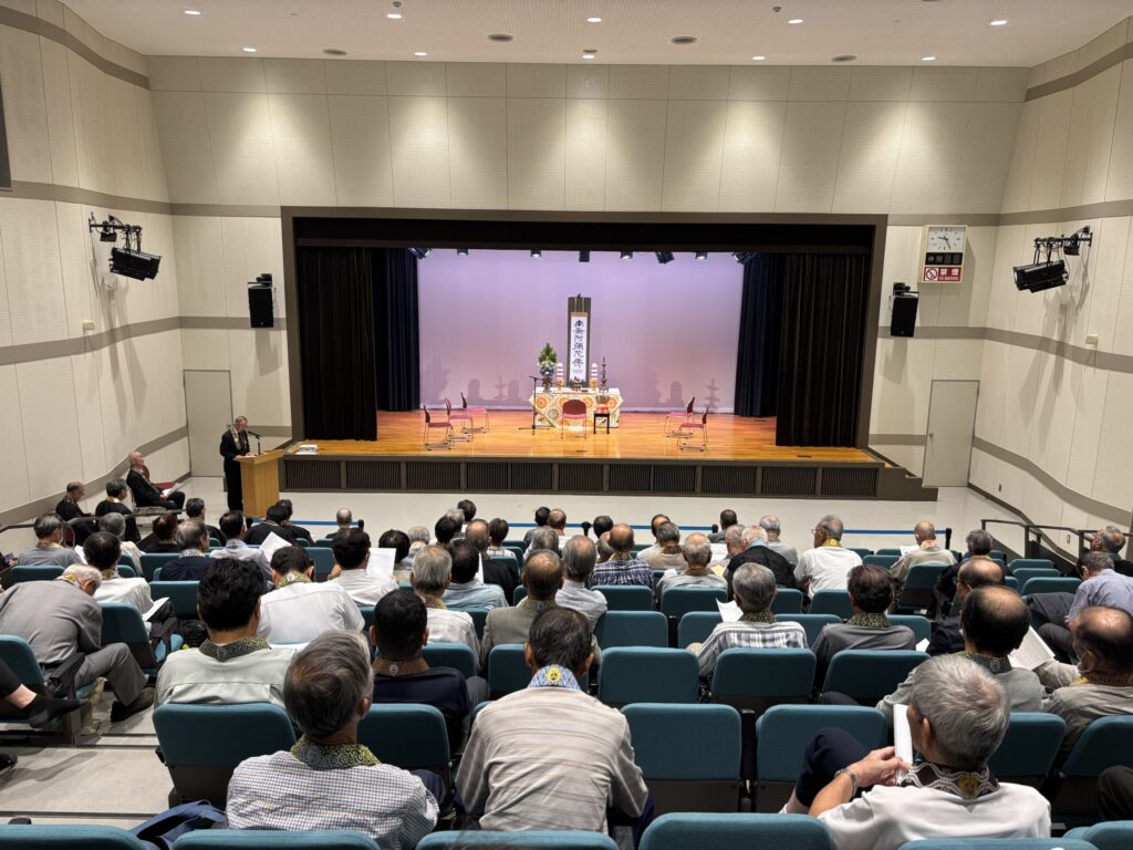 令和7年9月27日、午前9時より「ハーティーセンター秦荘」の中ホールにて、愛知上組門徒総代会第2回研修会が開催されました。会所紹介寺院は大沢町の善妙寺様、ご講師は藤真照先生。多くのご門徒の皆さまが集い、学びとご縁を深めるひとときとなりました。